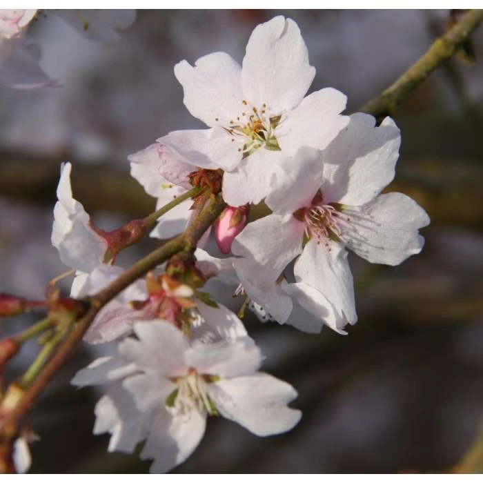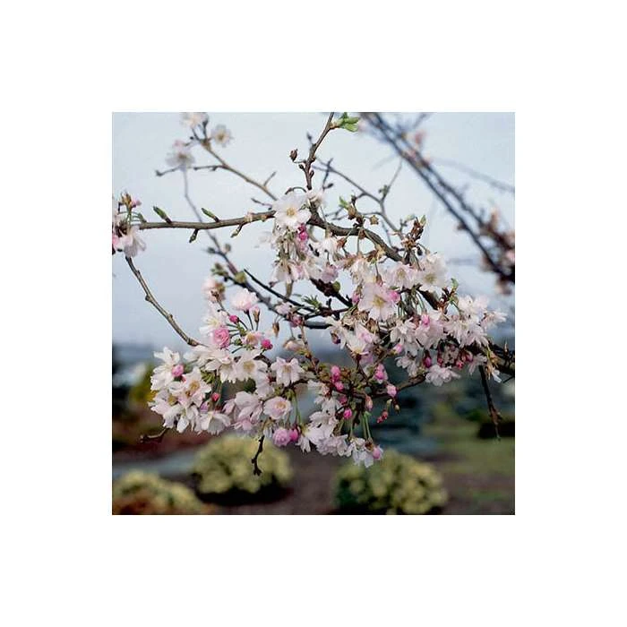 The Autumnalis cherry is a small deciduous tree of spreading habit that is a favourite among gardeners due the intermittent blooming of its semi-double white flowers, which can appear in autumn, spring, and winter. So while other trees are bare and lifeless, this cherry tree still looks beautiful.