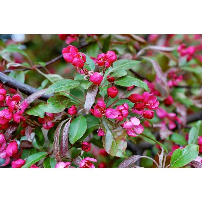 The Malus x moerlandsii ‘Profusion’ is an upright, spreading crab apple tree. This beautiful plant flowers profusely with young purple leaves, later turning to bronze and green in the summer. Reddish-purple crab apples follow in autumn which make for a lovely sight and a delicious snack for any hungry wildlife during those cold winter months. Pollution tolerant, the Profusion crab apple is sure to add a burst of colour to your garden and a delight to your taste buds.