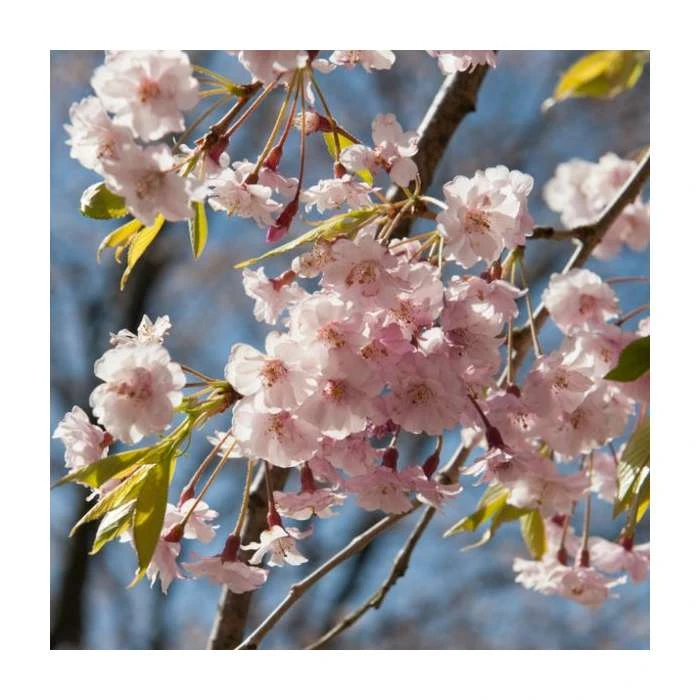 A small deciduous Weeping Cherry, Prunus pendula ‘Pendula Rosea’ is much admired for its graceful branches and dusky pink blossoms. These pink flowers will unfurl in late winter or early spring, and are followed by an abundant display of dark green, ovate-shaped leaves. Come autumn, they mature to orange and red – so it is understandable why this tree is a favourite for offering all year round interest! Many love this variety most for its pendulous branches, which create an arching silhouette, so this plant is wonderful for adding unique shapes and movement to your landscape.